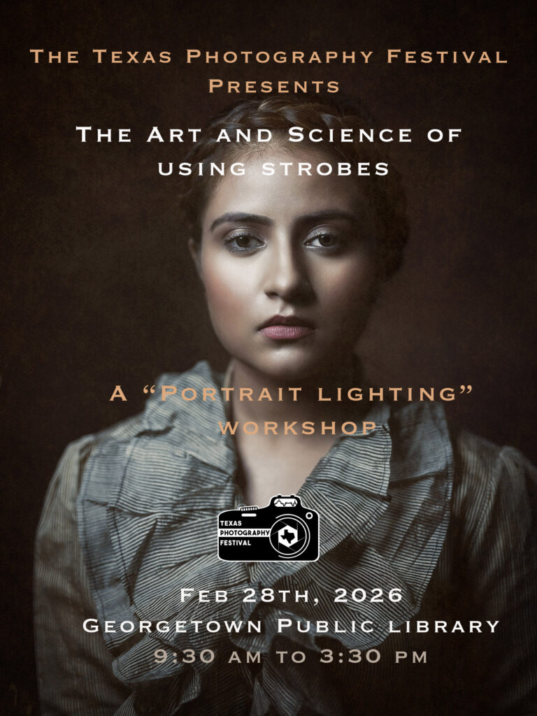 The Texas Photography Festival presents an in depth Portrait Lighting Workshop designed for photographers who want to understand studio/strobe lighting, not just placing it.